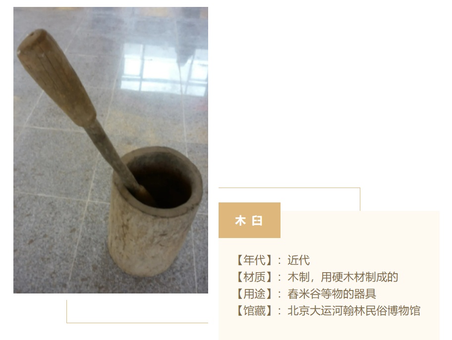 大运河翰林民俗博物馆里收藏的木臼物件通身素面,用于打夯的木杵存在裂缝,除了使用造成的磨损,更有岁月的磨砺。